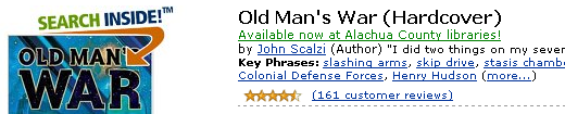 The Amazon Gainesville Libraries Linky is a Greasemonkey script that inserts status information from the Alachua County Library catalog into book listings from Amazon.com.