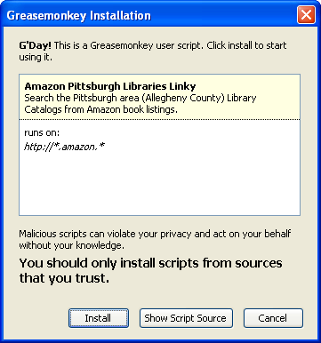 Pittsburgh library/Amazon script page and click on "Install this script"
