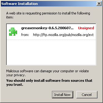 Step 6: The browser should now show you the Greasemonkey Installation dialog.