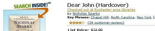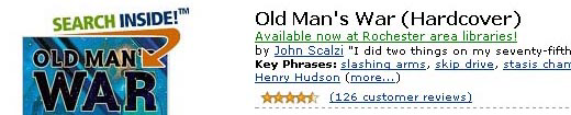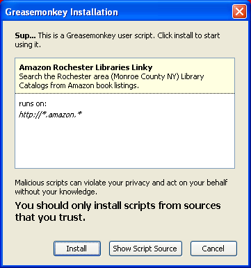 The Amazon Rochester Libraries Linky is a Greasemonkey script that inserts status information from the Monroe County, NY Library System into book listings from Amazon.com.